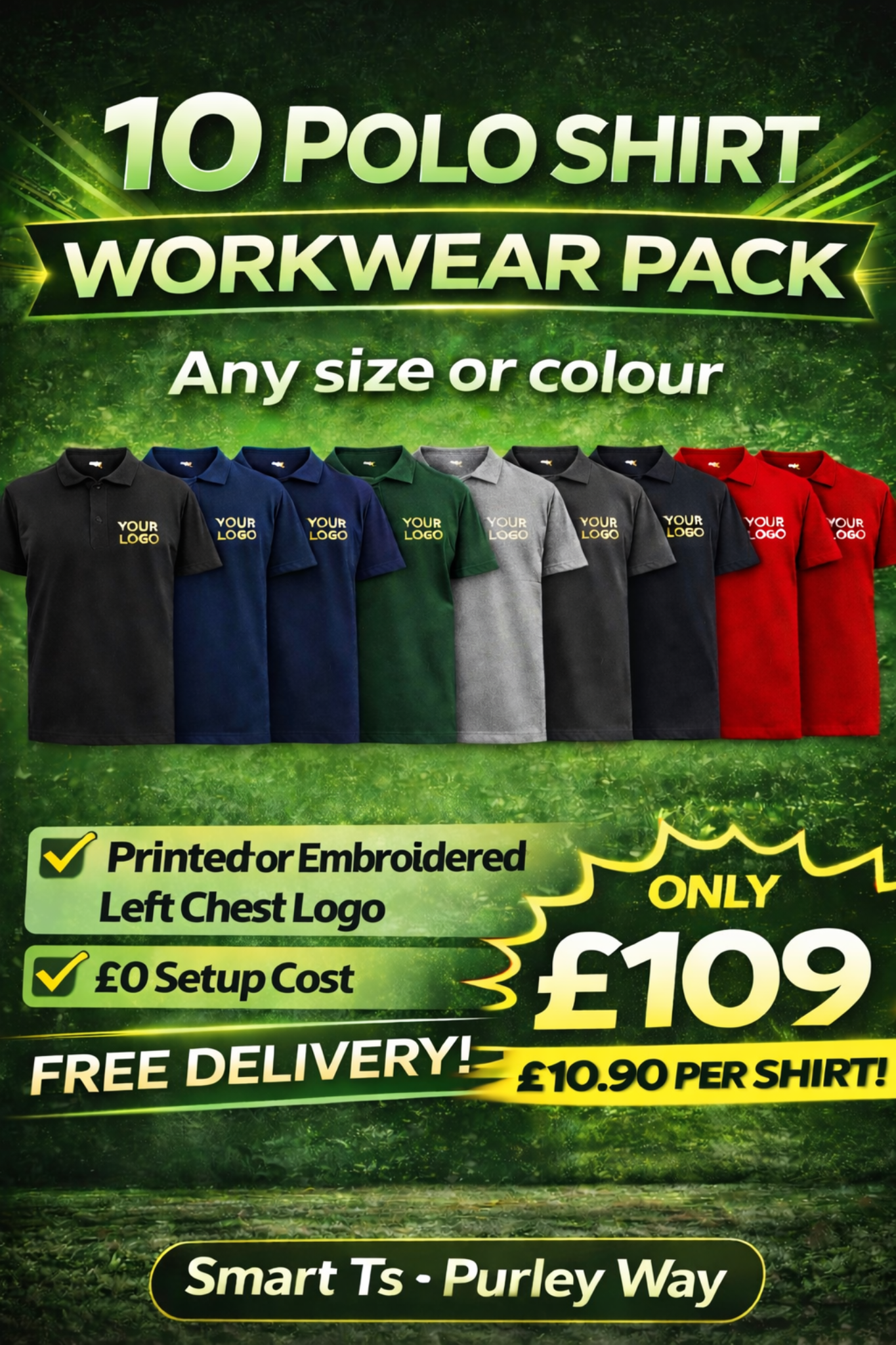 Logo on left chest printed or embroidered